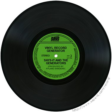 Make your very own simulated stacks of wax! Just enter some text and click the 'Go' button. A picture of a record will be generated for you. Collect 'em, trade 'em, put 'em on your website, or e-mail 'em to your friends.