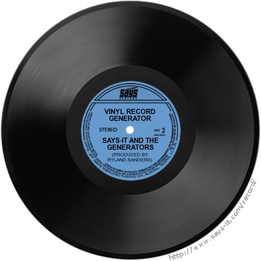 Make your very own simulated stacks of wax! Just enter some text and click the 'Go' button. A picture of a record will be generated for you. Collect 'em, trade 'em, put 'em on your website, or e-mail 'em to your friends.